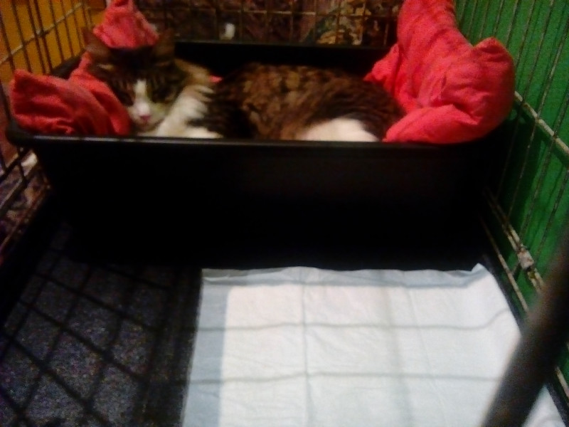 Скрипа спать на ночь закрываю в клетке так как он любит лежать на полу после чего ему становится хуже.