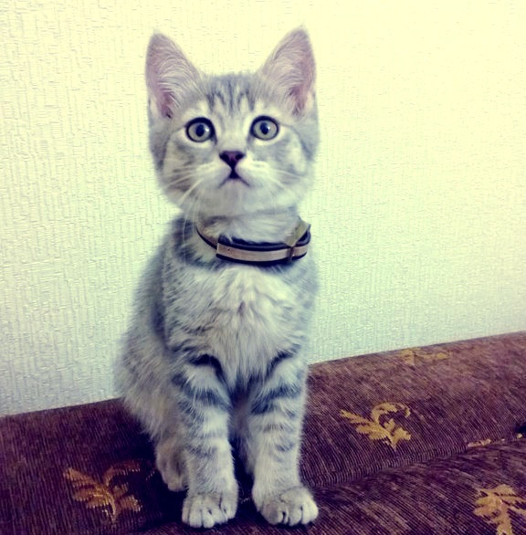 Девочка, 2 месяца! Кушает абсолютно все, лоточек знает на отлично! Очень ласковая, любит сидеть на ручках, играть с мячиком! Очень жаль киску - временно живет у меня на кухне, т.к. свой кот ее не принял и пытается всячески к ней пробраться и напасть(