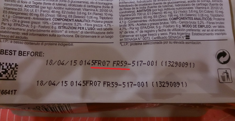 Да легко это определяется. На "французских" кормах есть LOT. Смотрите внимательно на то, что пропечатано в строке внизу пачки.