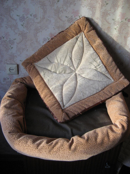"лежак из флока, с обратной стороны подкладочная ткань.