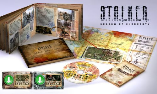 В сети появились первые изображения коллекционного издания весьма ожидаемого украинского шутера S.T.A.L.K.E.R.: Shadow of Chernobyl. Стоит отметить, что картинки опубликованы на страницах крупного британского магазина, так что, скорее всего, материалам можно доверять. Судя по этой картинке, в металлической коллекционной коробке с игрой S.T.A.L.K.E.R.: Shadow of Chernobyl вы найдете не только игровой DVD, но ещё и карту местности, специальную цветную инструкцию по выживанию в пустоши и дополнительные бесплатные многопользовательские бонусы (карты и скины для бойцов).