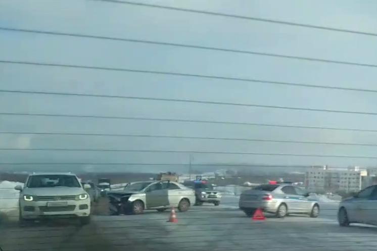 В Новинках образовалась огромная пробка из-за аварииНа улице Октябрьской столкнулись две машины
