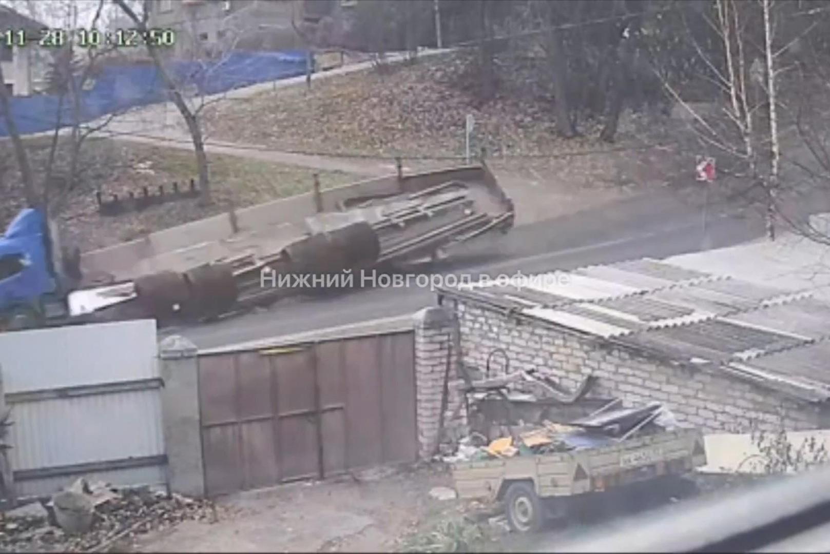 В Нижнем Новгороде фура снесла отбойник и задела несколько машин. Момент аварии попал на видеоВодитель грузовика двигался с большой скоростью