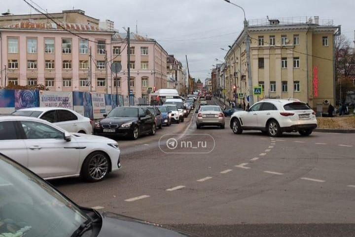 На дороге в центре Нижнего с вечера стоит брошенный автомобиль — движение у площади Свободы парализованоКто-то оставил машину рядом со стройплощадкой метро