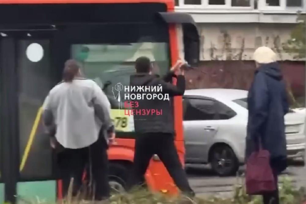 (Не)поехавший пассажир с ножом набросился на автобус в Нижнем Новгороде — видеоМужчина оторвал стеклоочиститель и разбил им окно